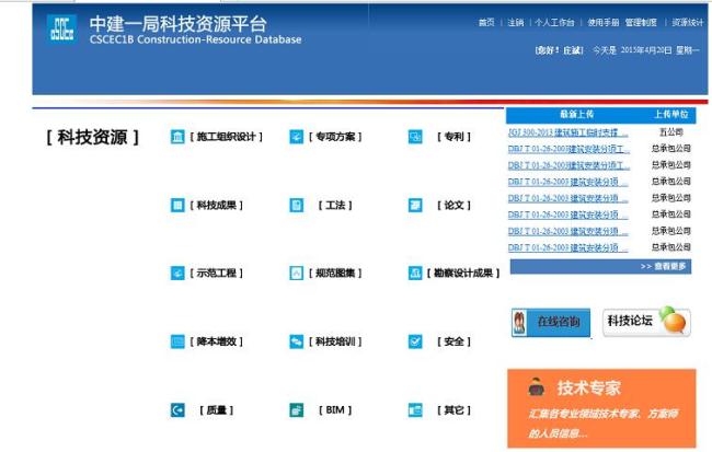 2012年,公司建立了科技資源庫,并向項目下發科技文件庫目錄提供共享方便項目管理人員借閱下載。目前庫中收集書籍類資料共1000余 冊,收集歷年集團級優秀工法、北京市工法電子版800余篇,各種類型優秀施工組織設計方案100余篇,裝飾類專利100余篇,裝飾類優秀論文90余篇,住 宅工程施工工藝庫1個。2013年,中建一局科技資源平臺上線。平臺結合各公司的科技力量和信息化手段,對現有建筑行業內和單位中的各種科技資源進行廣泛 深層的挖掘和歸類整理,建立起科技資源共享平臺,提供全方位、多角度的信息資源共享服務,裝飾公司將此平臺賬號發放至各大項目部使項目部全面獲得最新科技 資源情報。